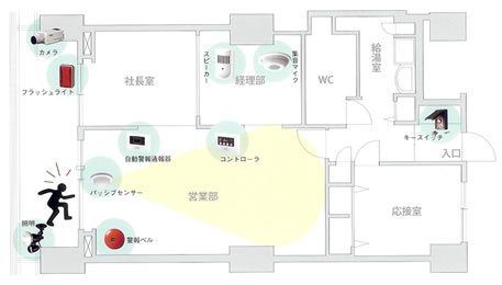 @万一室内に侵入された場合でもセンサーがキャッチし、カメラが室内の状況を捉えます。 |